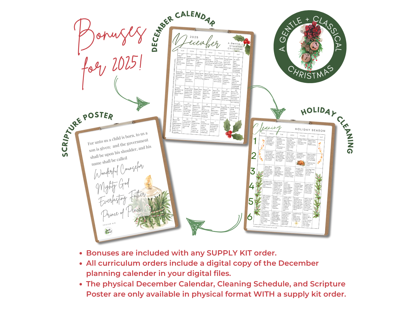 For 2025 Christmas Kits, we have a few beautiful and helpful bonuses! These bonuses are ONLY available with any order that includes a SUPPLY kit. They are not included with a curriculum-only order.